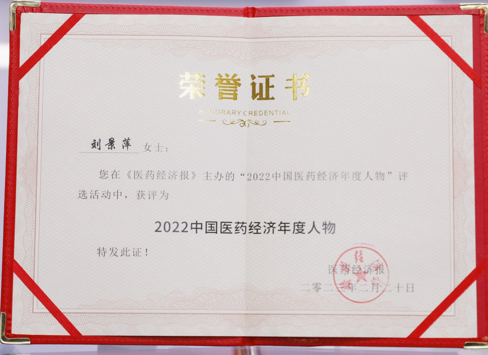 20日,2022中国医药经济年度人物榜单隆重揭晓,尊龙凯时-人生就是搏药业集团刘景萍董事长当选“2022中国医药经济年度人物”。